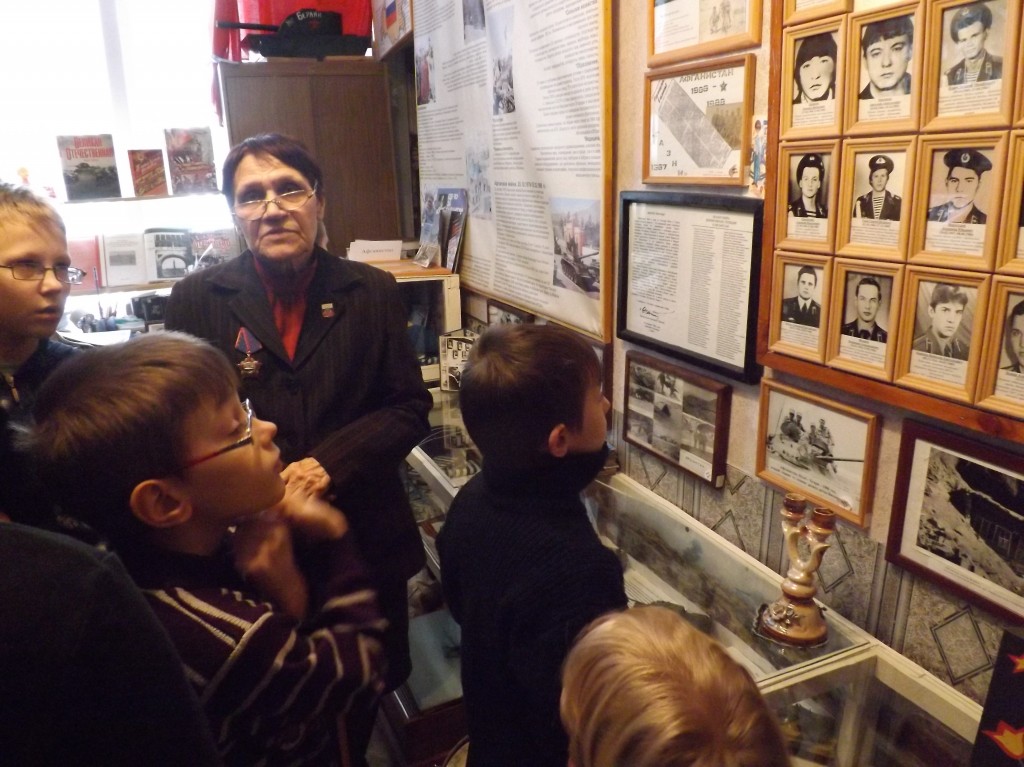 В канун 24 годовщины вывода советских войск из Афганистана ребята посетили «Музей славы войнам России» в Доме детского и юношеского творчества «Кировский». Экскурсовод провела ребят по музею и рассказала о героических страницах нашей истории. Также здесь прошла встреча с Кастрышиной Альбиной Семёновной, матерью война – интернационалиста. Сын Альбины Семёновны – Чижик Сергей Евгеньевич (13.10.1963 – 19.07.1984). В Армию призван 2 апреля 1982 года Первомайским РВК Омска. Механик-водитель БТР. Воинскую службу проходил в Термезе, затем в Афганистане. Сержант. Участвовал в ряде боевых операций. Погиб в районе города Файзабад. Награждён орденом «Красной Звезды» (посмертно), медалью «Войну - интернационалисту от благодарного афганского народа». На школе №91 города Омска, где учился Сергей, установлена мемориальная доска. Альбина Семёновна рассказала о своём сыне, его боевых товарищах. Ребята познакомились с фотографиями и письмами тех лет. Равнодушных не осталось. Такие встречи помогают воспитывать чувство патриотизма, сострадания и милосердия.