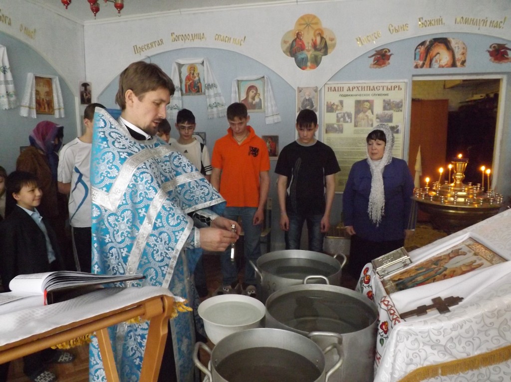 Праздник Крещение Господне называется также Богоявлением, так как в этот день миру впервые явилась Пресвятая Троица: Бог Отец провозгласил о Сыне с небес, Сын принял Крещение в водах реки Иордан, и Дух Святой сошел на Сына в виде голубя. По традиции проходят праздничные богослужения, а затем совершается чин освящения воды. В нашем детском доме праздничное богослужение провел отец Антоний (Хмелёв) и совершил водосвятие. На водосвятном молебне присутствовали ребята православной воскресной школы «Возрождение» и сотрудники нашего детского дома.